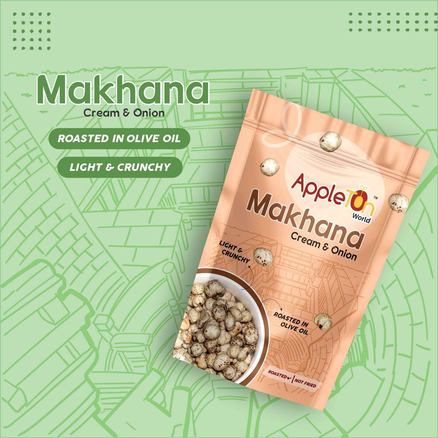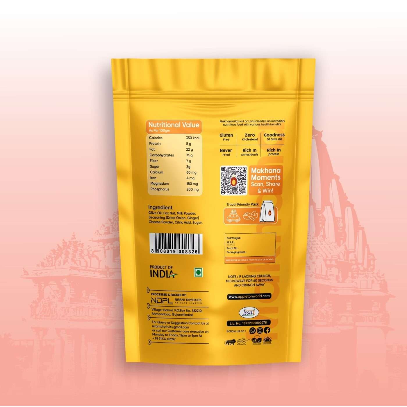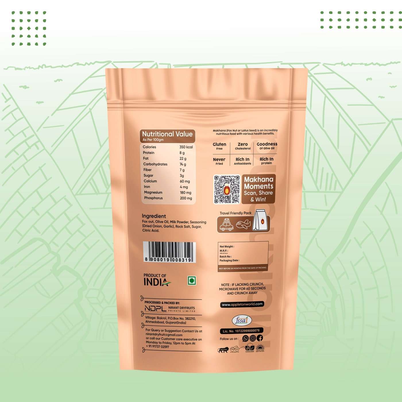 Made from premium-quality makhana (lotus seeds) and seasoned with natural spices, it’s the perfect low calorie, high fiber snack to kick your cravings without compromising on health.